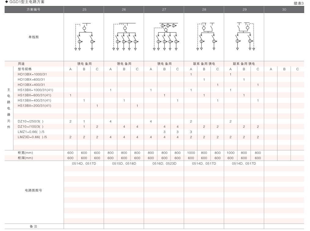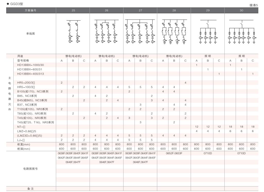 GGD柜的主電路設計7129個方案,共298個規(guī)格《不包括輔助電路的功能變化及控制電壓的變化而派生的方案和規(guī)格)。