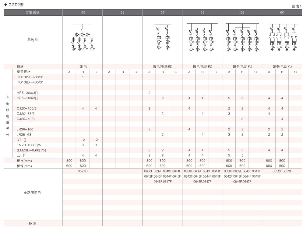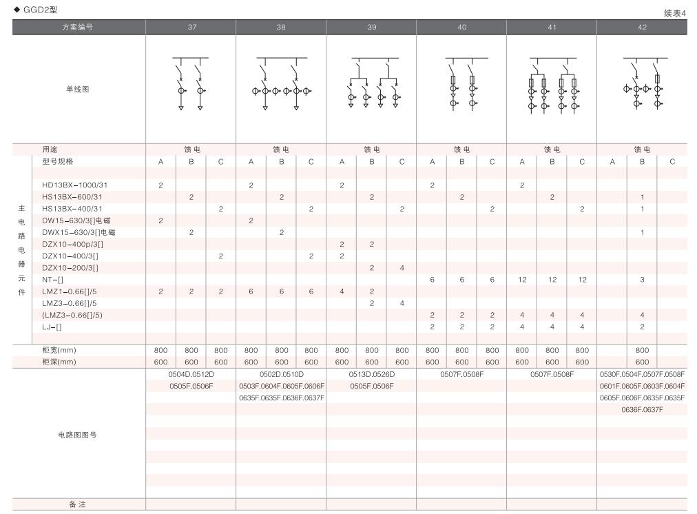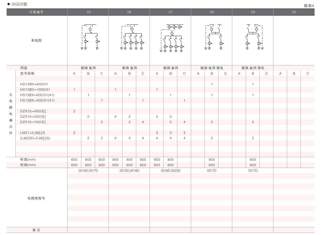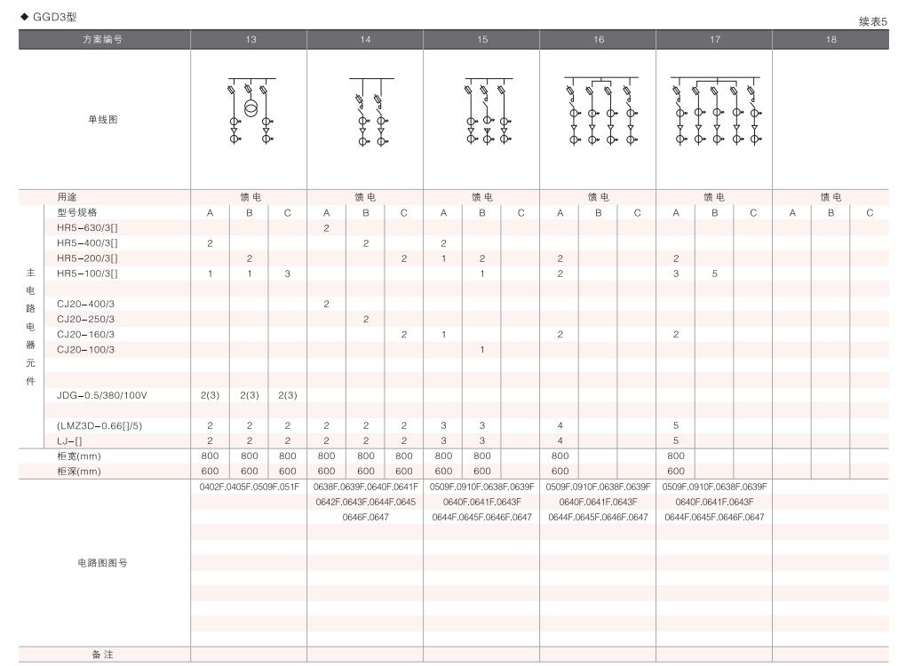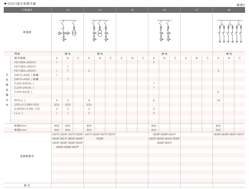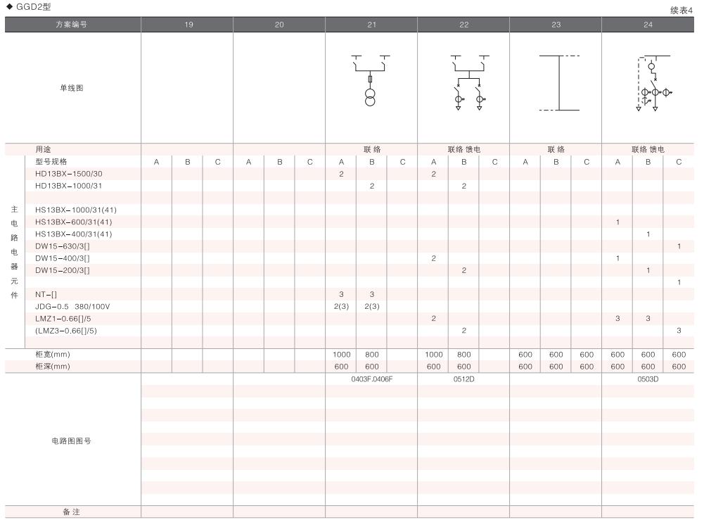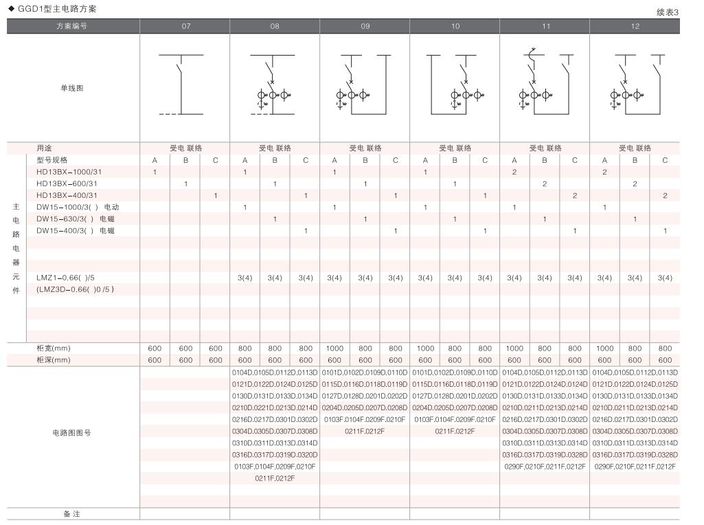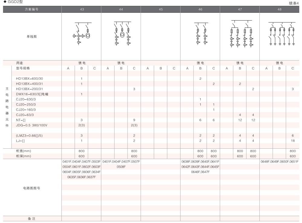 此外,為適應無功補償的需要設計了GGD電容補償柜,其主電路方案4個,共12個規(guī)格。