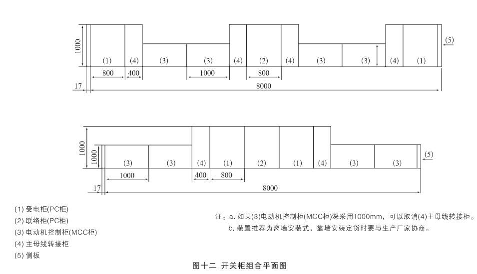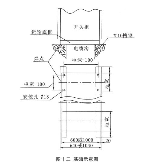 安裝:開關(guān)柜就位。找準位置,按圖十一所示進行焊接,焊接節(jié)柜和焊長由用戶確定,產(chǎn)品安裝與配電室的相對位置參考圖十二,其中吊索是否安裝由用戶確定,制造商提供的原則是:當母線橋的長度大于3米時應(yīng)考慮安裝吊索。但是,當母線橋的電流大于或等于2500A時,其長度為2.5米時也應(yīng)安裝吊索。